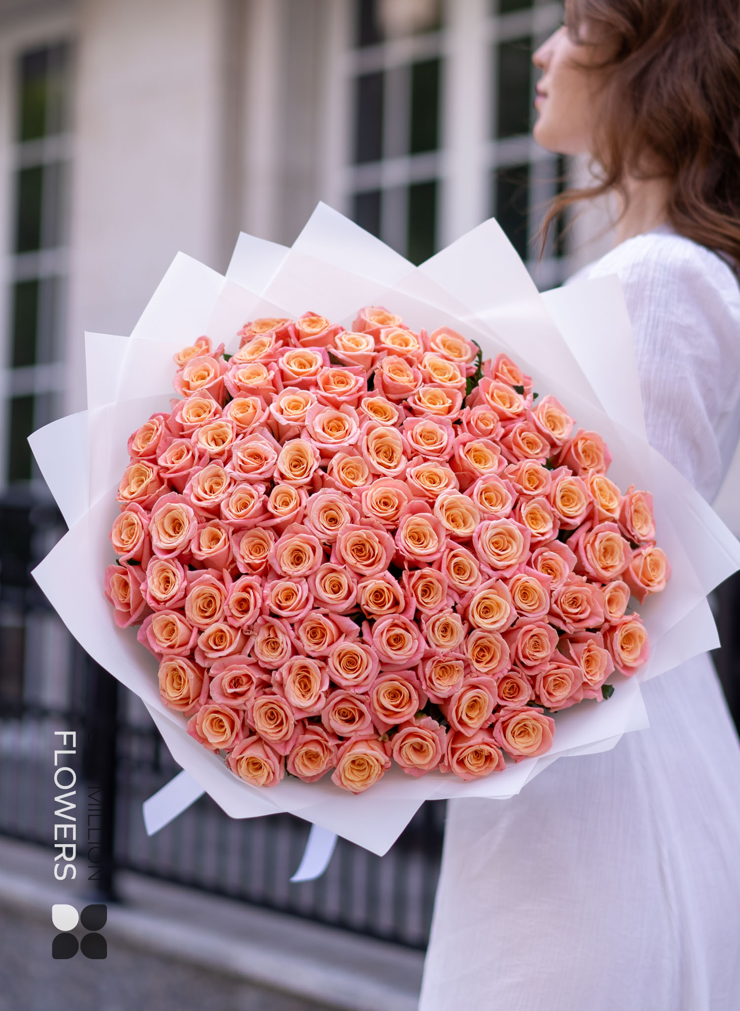 Яркий и запоминающийся букет из 101 розы «Мисс Пигги» — это роскошный подарок, который произведёт неизгладимое впечатление! Уникальный оттенок этих роз сочетает в себе нежные персиковые и насыщенные розовые тона, создавая элегантный градиент. Композиция выглядит воздушной, объёмной и идеально подходит для самых значимых моментов. Будь то день рождения, юбилей, признание в любви или просто желание подарить радость — этот букет никого не оставит равнодушным!