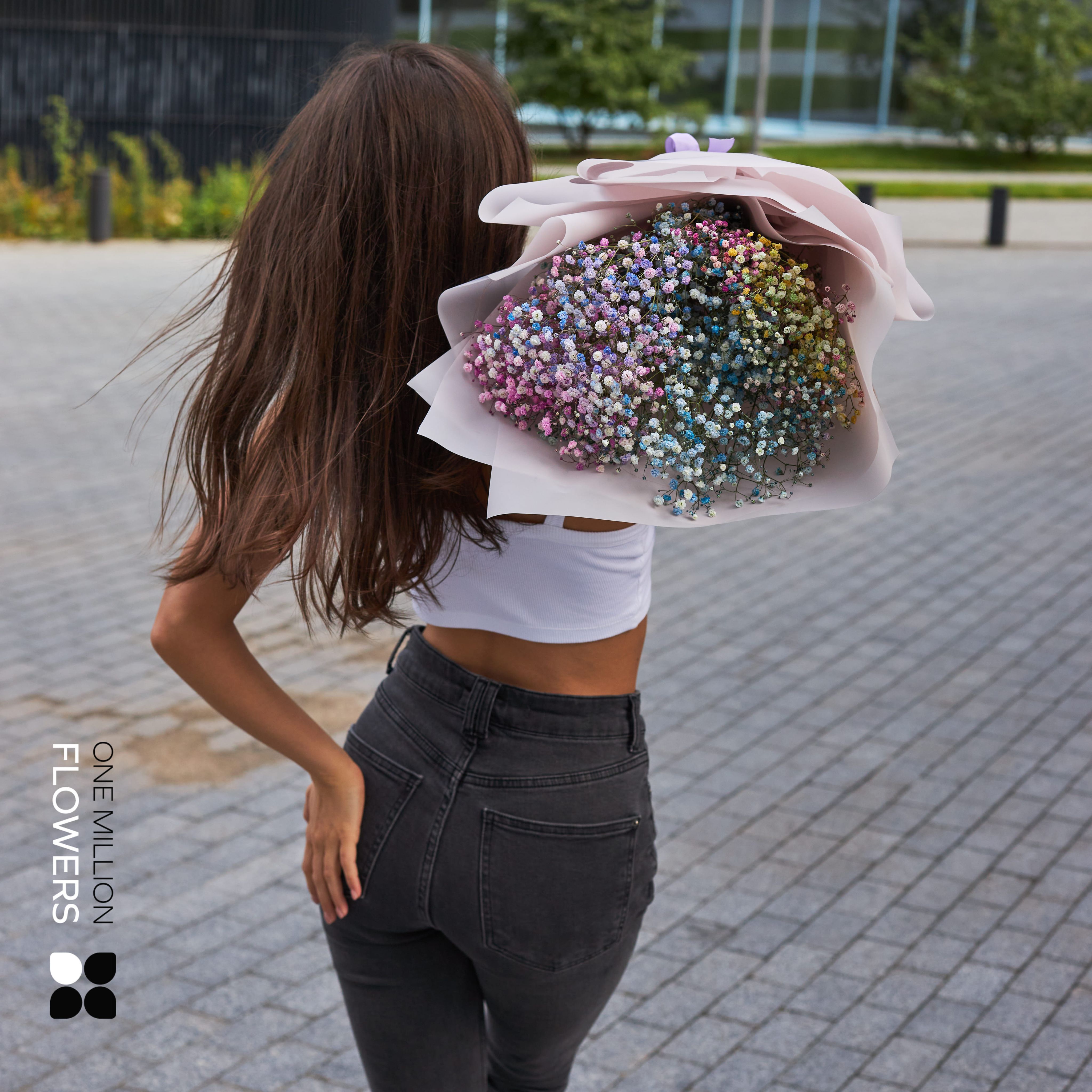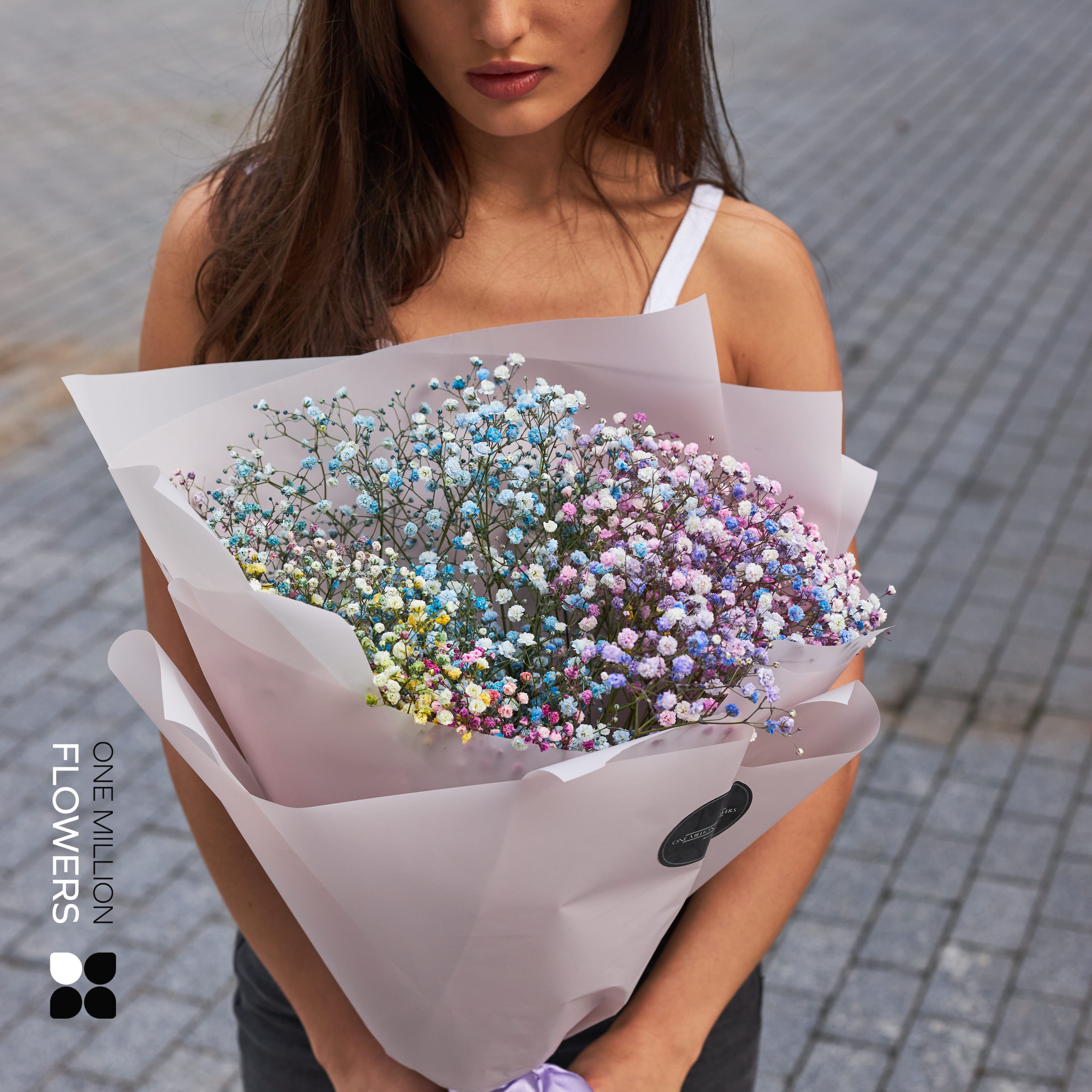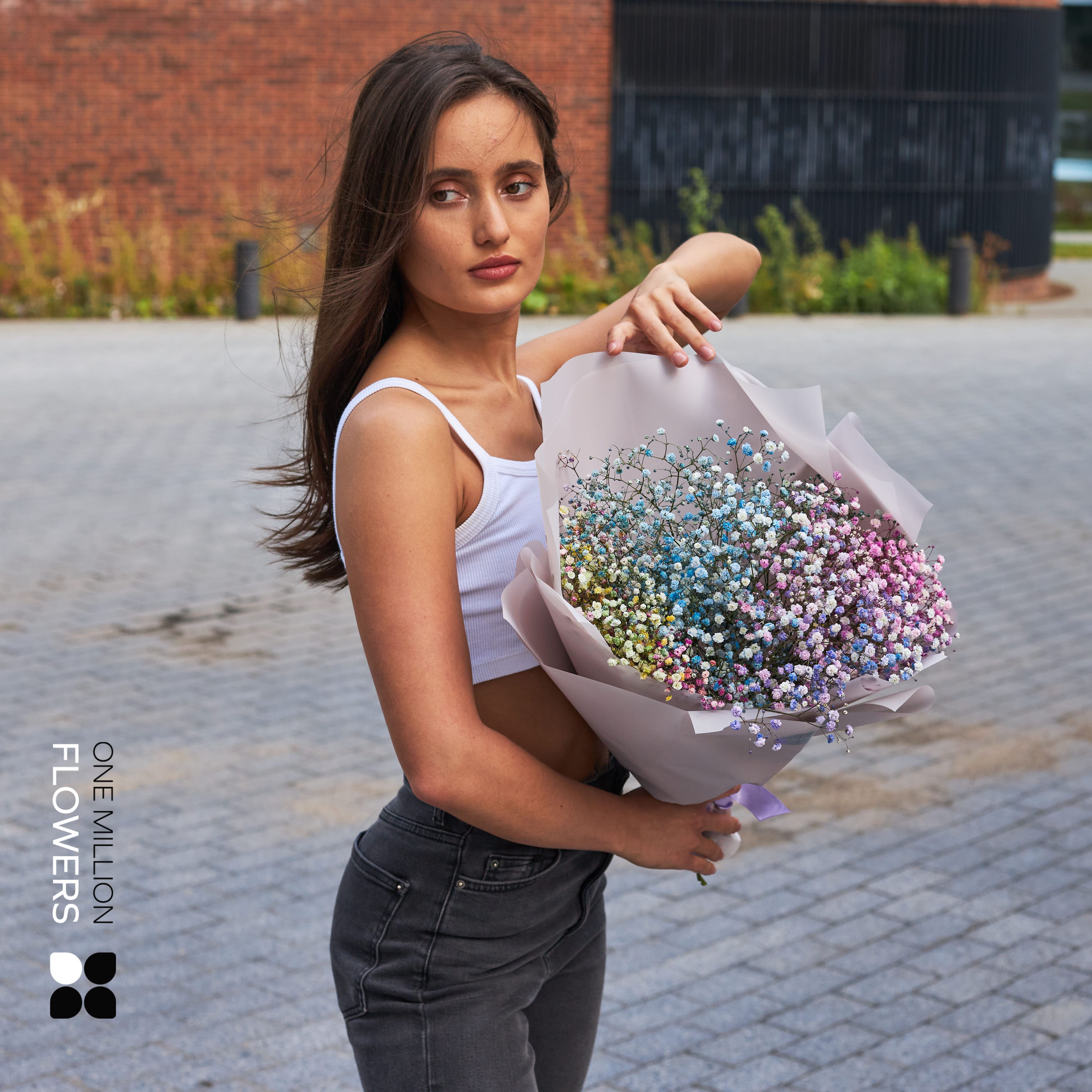 Главным преимуществом "Мирабелла" является его элегантность и неповторимость. Каждая ветка гипсофилы была выбрана с большой тщательностью, чтобы создать красивый композиционный цветочный ансамбль.