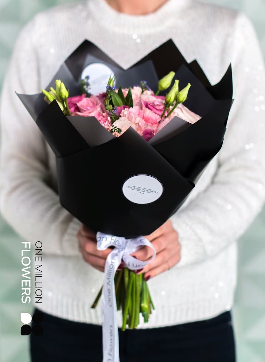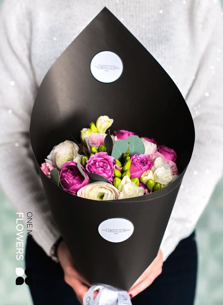 Букет "Камбриа" Black — это настоящее произведение искусства, созданное для удивления и вдохновения. В его состав входят 7 кустовых роз Мисти Баблз, которые обладают невесомой красотой и нежным ароматом. Композицию дополняют 15 фрезий, 3 розовых диантуса, 4 белых ранункулюса и 2 пионовидные розы Пинк Охара. Эти цветы создают невероятный контраст и дарят частичку весенней свежести в любую погоду. Каждая деталь продумана и тщательно подобрана, чтобы вызвать восторг у получателя.