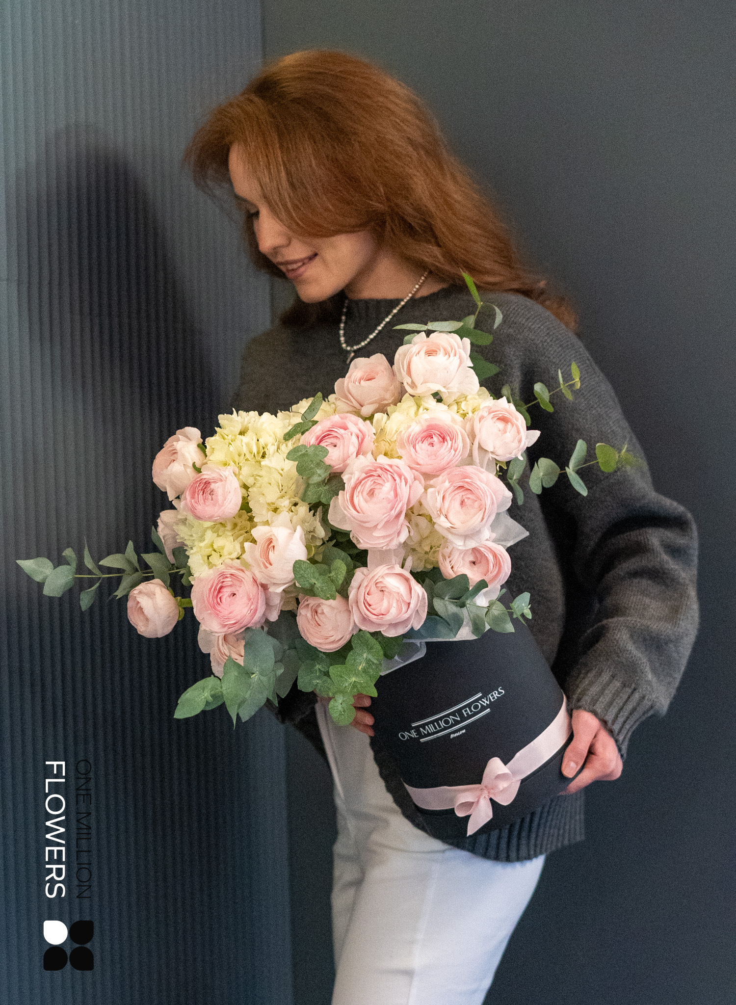 Коробка «Равелла Леди» Midi Black вмещает в себя тщательно подобранные цветы: пионовидные розы и эустомы, которые в совокупности создают романтичный и стильный образ. Пионовидные розы, со своим сладким и нежным ароматом, символизируют страсть и любовь, в то время как эустомы добавляют легкость и утонченность, отражая искренние чувства и заботу.